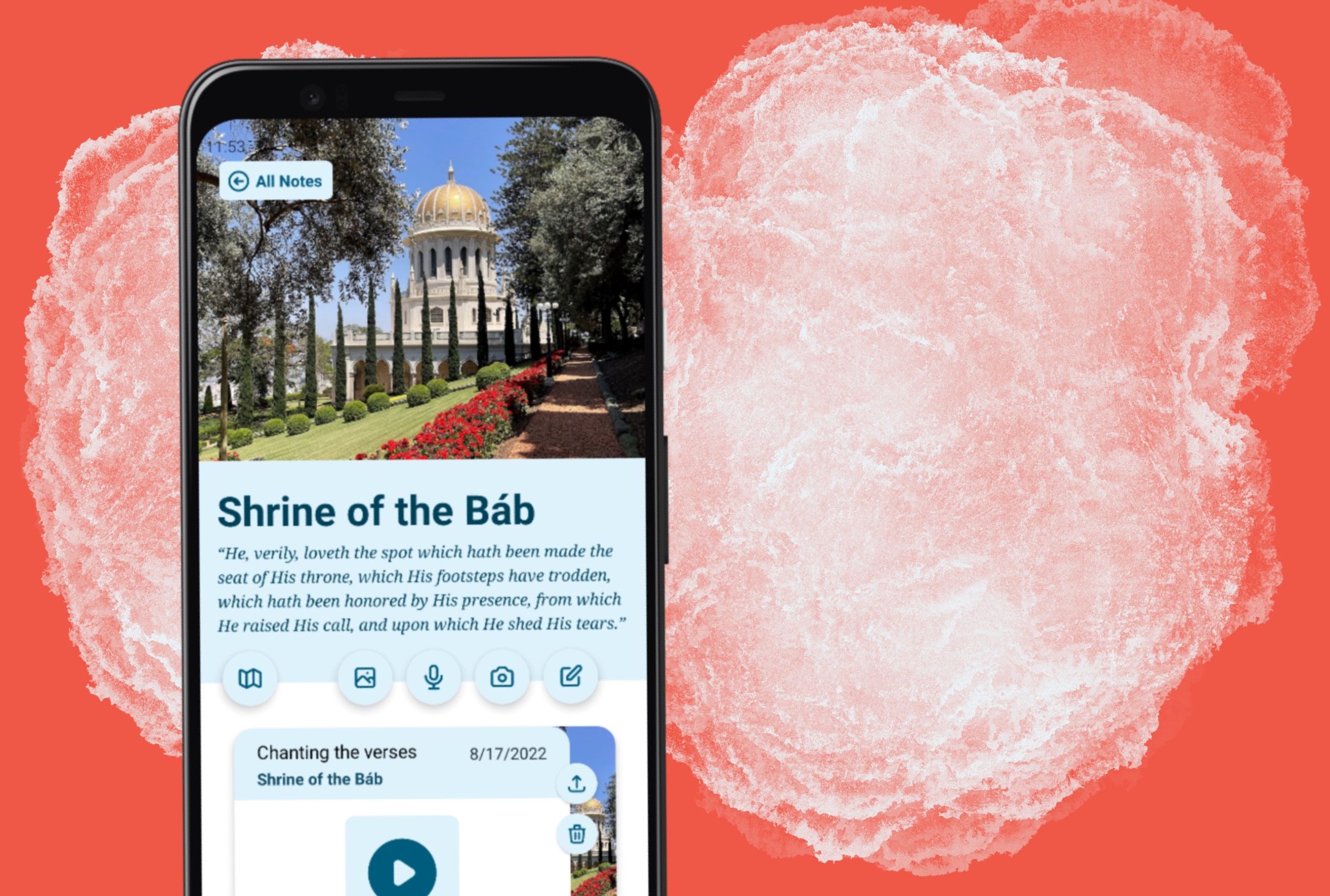 We developed “My Baha’i Pilgrimage Journal” app in hope that it will contribute to make your pilgrimage even more memorable and you’ll be able to come back to relive those mystical moments again and again.